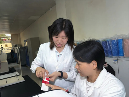 2022年,张伟以研发工程师的身份加入技术研发部,负责色纱管理,涵盖业务对接、颜色开发、材料采购、色纱比色、新品定价及盘活呆滞物料等工作,同时兼顾前纺研发新品的质量管理,初步进行生产过程的质量控制。半年的时间,她成功实现母粒库存呆滞金额减少180万以上,开发100多种颜色,完成400单以上样本比色,非黑色纱的交期缩短2.5天。这段经历使她深刻认识到,“质量管控不能仅靠事后检验,必须建立全过程、系统化的管理体系”。2023年,凭借对质量把控的敏锐度,张伟加入科研质量部,担任质量高级工程师,开启了质量管理的专业之路。