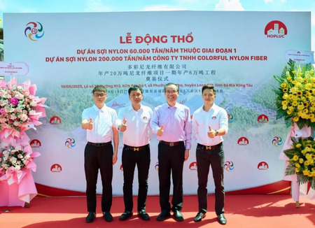 除了积极开拓国际市场,汪建根还着力推动公司海外投资项目的落地,将生产线“搬出”国门。2025 年5 月 ,永荣股份旗下多彩尼龙纤维有限公司一期年产6 万吨尼龙纤维工程项目奠基开工仪式在越南举行。这一项目作为永荣股份海外布局的首个超纤产业园核心工程,引进了德国巴马格等国际顶尖生产设备,并创新融合工业互联网技术,构建起从原料处理到成品产出的全流程智能化生产体系。“我们选择在越南建厂,是经过深思熟虑的。越南拥有丰富的劳动力资源和优惠的投资政策,地理位置也十分优越,便于我们辐射东南亚市场,迅速融入国际产业链。”汪建根介绍道。
