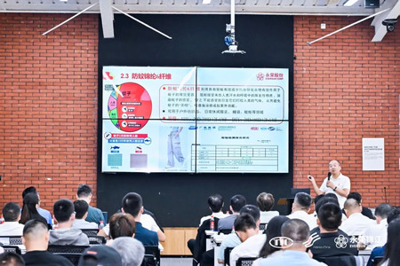 山东联润新材料科技有限公司总经理助理朱培在《锦纶差别化纱线加工赋能产品开发创新》中聚焦创新性锦纶产品的加工与开发,介绍了紧柔纺产品的混纺技术、产品品质以及应用方向。他表示,紧柔纺机能锦纶在与羊毛、棉、天丝等纤维混纺的过程中,展现出了干爽、舒适、轻盈、耐磨的优势性能,能够助力产品实现高性能的品质升级。
