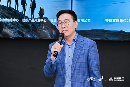 在《永荣股份差异化锦纶产品及未来趋势》分享中,福建永荣锦江股份有限公司技术研发资深工程师金志学介绍了可个性化定制功能的锦康纱®、实现科技与自然融合的锦逸纱®、绿色低碳环保的锦生纱®的永荣股份“三根纱”高端差异化产品矩阵,他表示,锦纶在防晒衣、冲锋衣、羽绒服、户外装备上均能实现高效应用,未来锦纶可在消费者的基础需求之上,考虑防护、社交、自我等方面的需求,提升产品的附加价值。