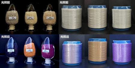 光致变色纤维是永荣股份在智能纺织领域的又一突破。该纤维通过在锦纶分子链中引入光敏基团,使其在紫外线照射下发生可逆颜色变化,实现“阳光变色、遮光复原”的智能效果,为服装与纺织品带来动态变化的视觉魅力与互动趣味。